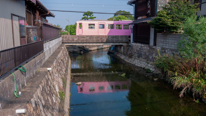 時々、昔懐かしい電車のモーター音が聞こえます。しばらく橋の上でその音を待っていると、