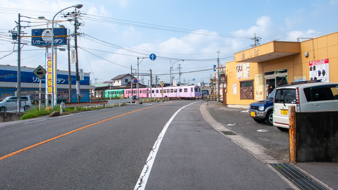 街道と平行して近鉄内部線が走っています。