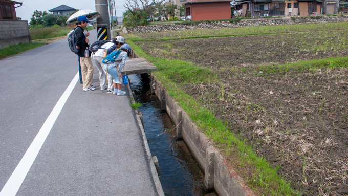 普通ならすぐに気が付くのですが、道路脇の小川にザリガニがいて、子供達が夢中で観察していて、