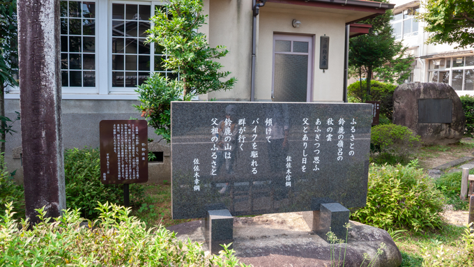 ほどなく小沢本陣跡や佐佐木信綱の生家があり、句が書かれた立て札などがあちこちにあります。