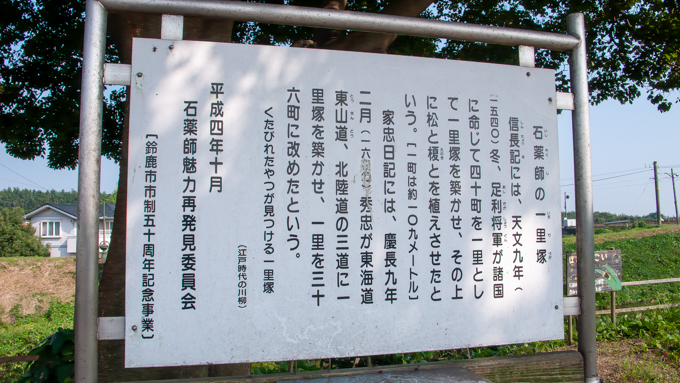 さらに進むと視界が開け、石薬師の一里塚がありました。