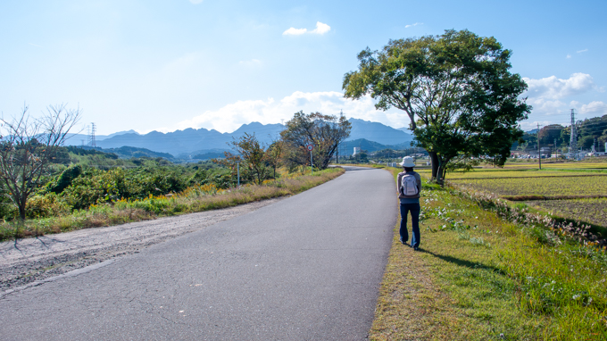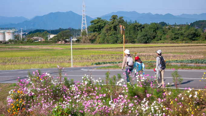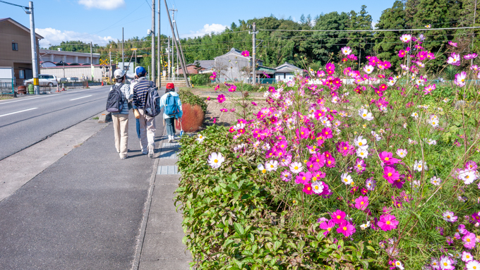 あちこちにコスモスが咲いていて、のどかな街道をゆっくり進みます。