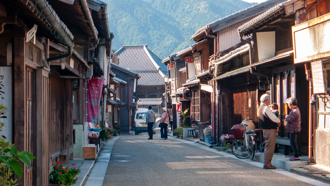 古い民家の建ち並ぶ街道は日本の原風景といえるでしょう。