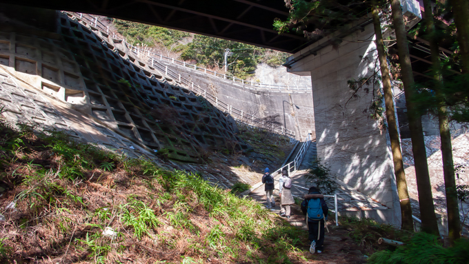 登山道といっても険しい場所はなく、国道1号線の下は階段になっていたりします。