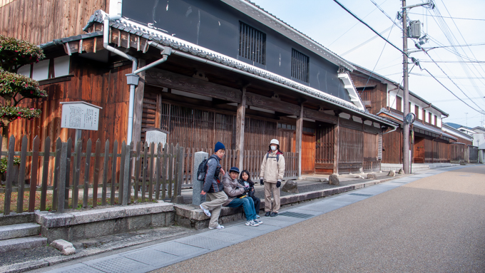 土山宿本陣跡で記念撮影して、宿の出口付近にあるバス停「土山西口」からバスに乗車し