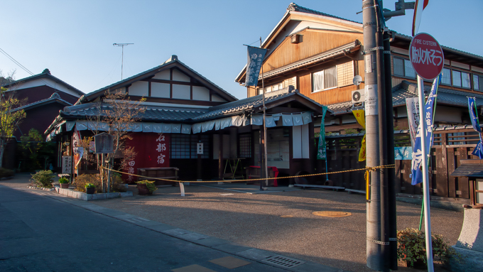石部宿茶屋は非情にも営業時間に間に合わずロープが張られていました。